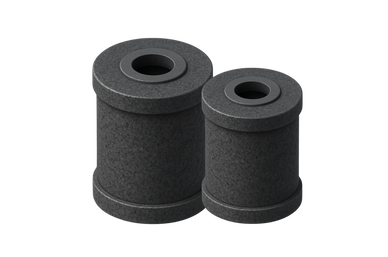 Compressed activated-carbon block for colour, odor, and chlorine reduction.