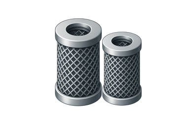 Reusable stainless-steel cartridge for high-temperature or aggressive-fluid filtration.