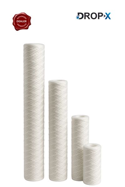 The DropX PP Wound Cartridge is a precision depth filter designed for high dirt-holding capacity and exceptional mechanical strength. Manufactured by winding continuous polypropylene yarn around a rigid core, it offers true depth filtration with graded pore density — trapping coarse particles on the surface and finer ones deep within the layers. The result is consistent filtration, stable differential pressure, and long operating life across a wide range of industrial and process applications.